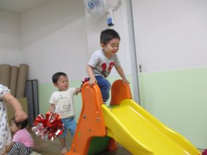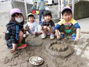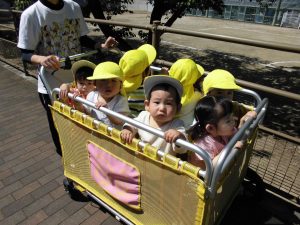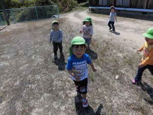広場でかけっこをするのにはまっているちゅうりっぷ組さん。