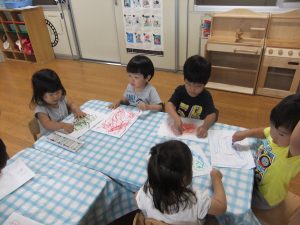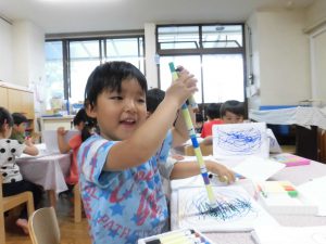 雨の日にはクレヨンでお絵かきを楽しみました。