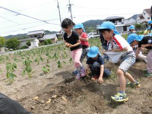 ひらい園まで電車で行き じゃがいも掘りをしました。