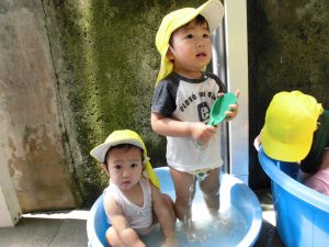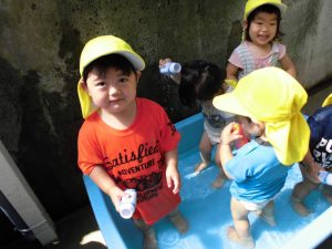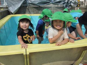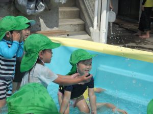 みんな水あそびが大好きでプールに入ると大はしゃぎです。