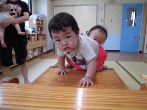 月齢の小さい子どもたちはずり這いや這い這いでいろいろな所へ
